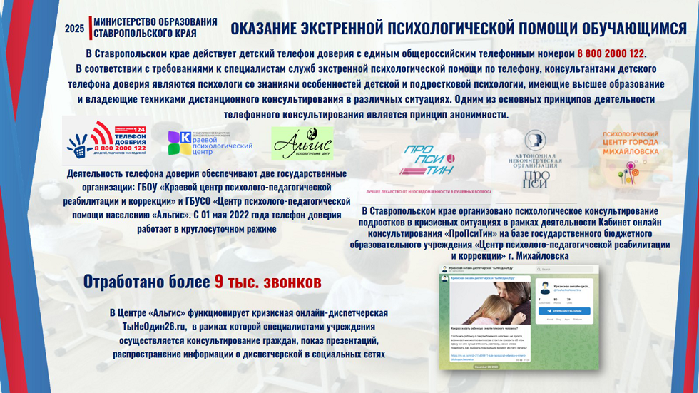 Телефоны «горячей линии» министерства образования Ставропольского края:
